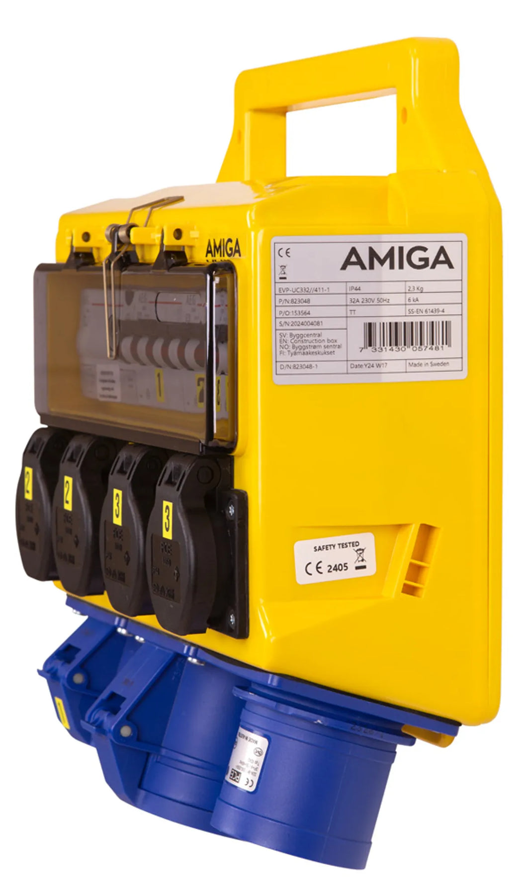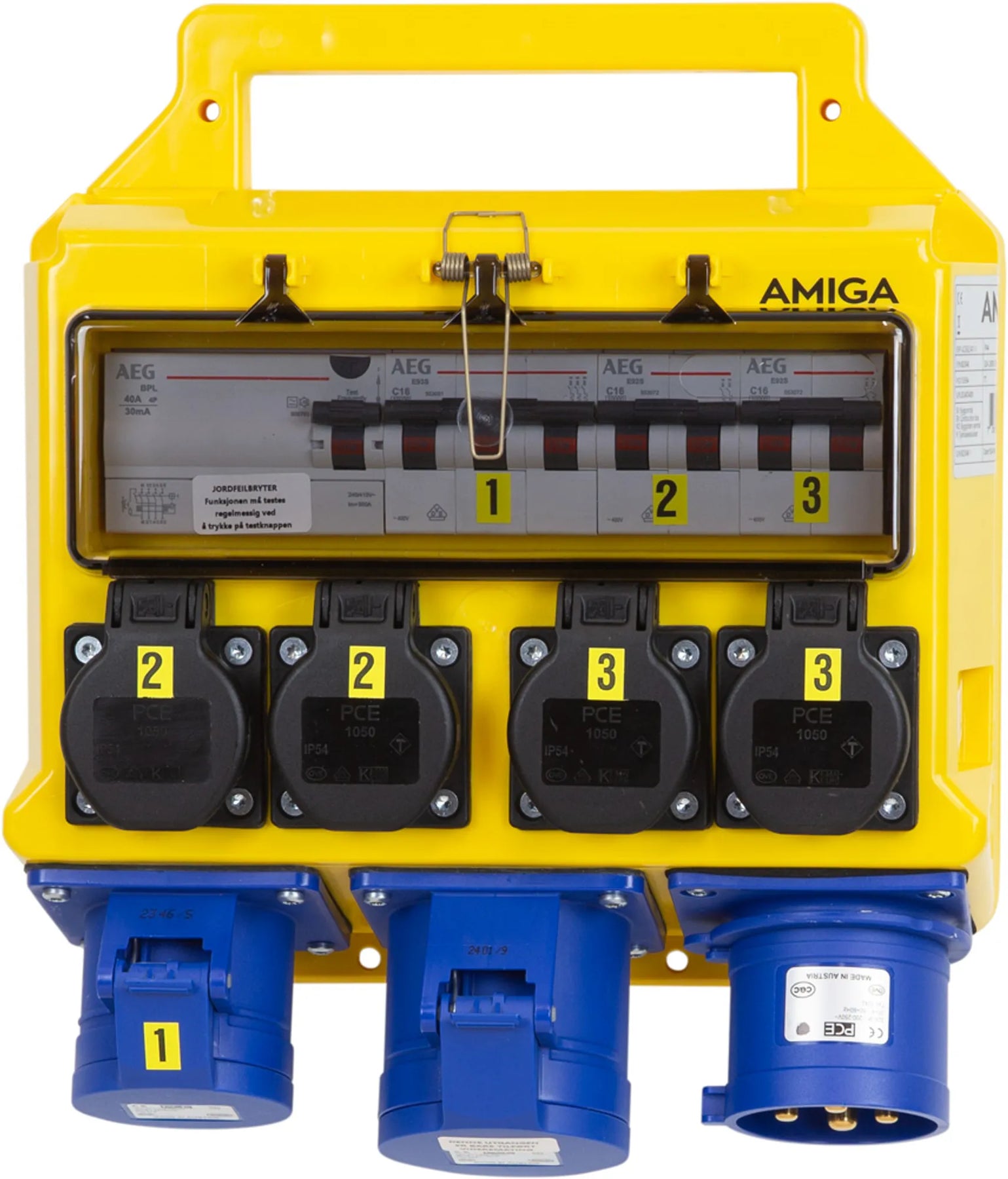Byggsentral 32A 230V 3-fas i Norskutførelse. En kompakt robust elväska byggd i slagtålig ABS plast Utmärkt på byggarbetsplatser och industri.Centralen är byggd i slagtålig ABS plast som tål låga temperaturer utan att spricka. Centralen är resistent mot syror, alkaliska lösningar, alkohol, fett, olja, och saltlösning. Bärhandtag med intrigerad upphängning. Säkringslock i slagtålig polykarbonat som är självstängande.