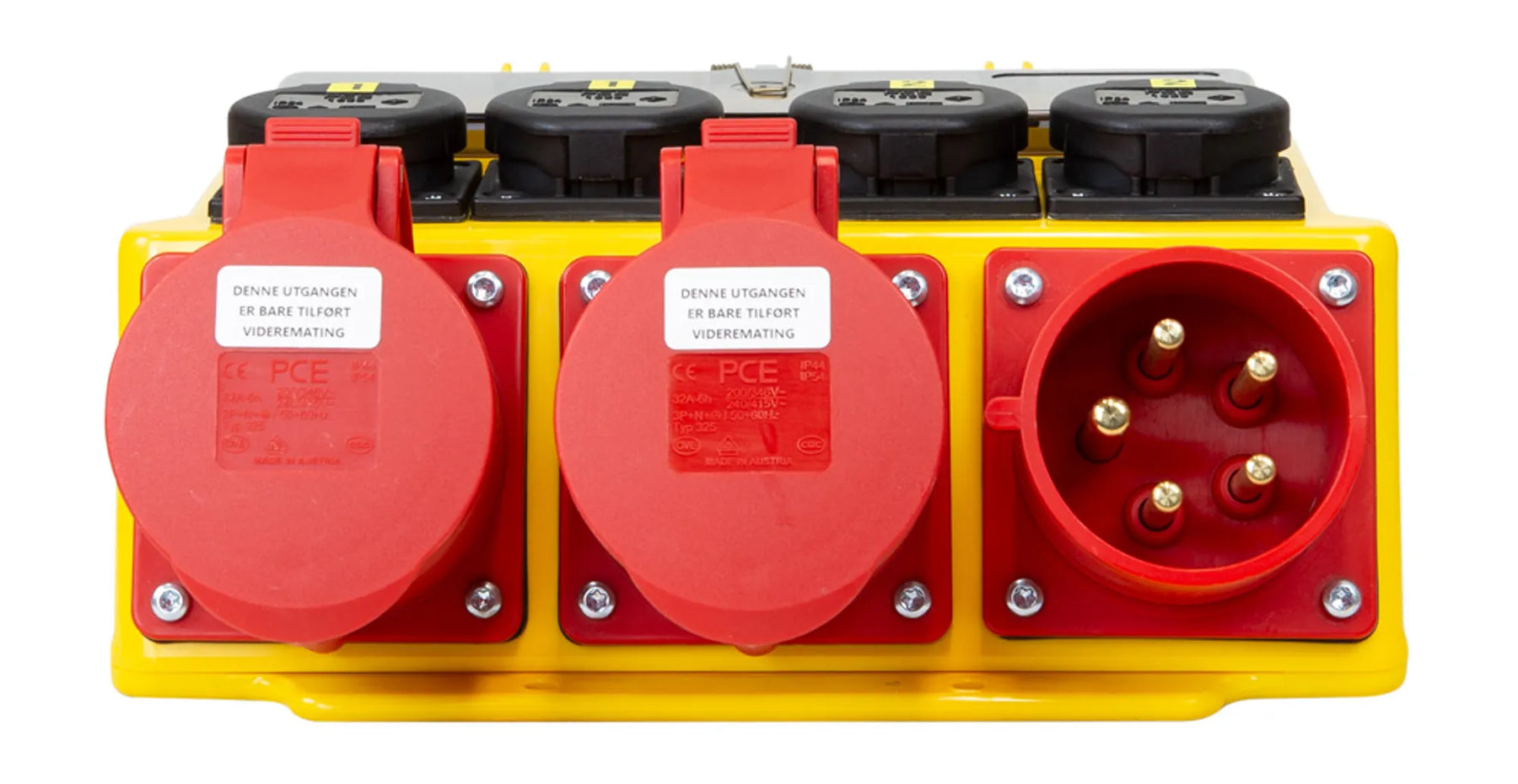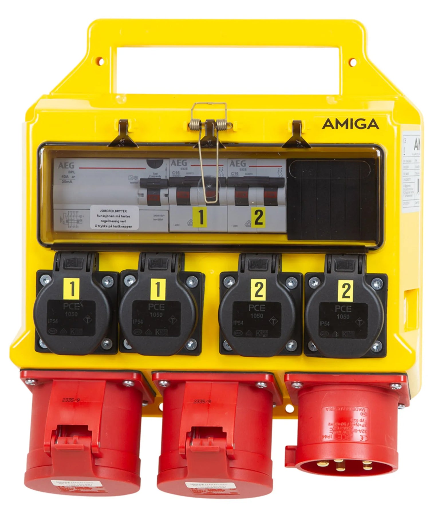 Byggcentral 32A. Allpoligbrytning framtagen för den Norska marknaden. En kompakt robust elväska byggd i slagtålig ABS plast Utmärkt på byggarbetsplatser och industri.Centralen är byggd i slagtålig ABS plast som tål låga temperaturer utan att spricka. Centralen är resistent mot syror, alkaliska lösningar, alkohol, fett, olja, och saltlösning. Bärhandtag med intrigerad upphängning. Säkringslock i slagtålig polykarbonat som är självstängande.Byggsentral 400V 32A. IP44. Norsk utførelse 2 pol sikringer. Vikt 2,5 kg. H=120 B=250 D=260 mm Inntak: 1 stk 432/400V Uttak: 2 stk 432/400V 4 stk 230V schuko avsikret 2+2 16A Jordfeilbryter 40A 30mA