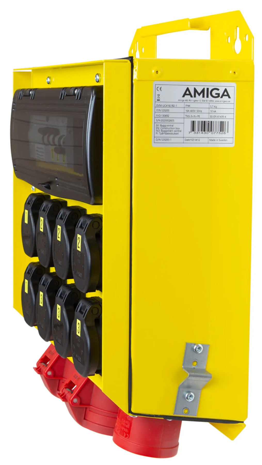 En kompakt robust el väska byggd i 1,5mm stålplåt som är behandlat med Magnelis. Utmärkt på byggarbetsplatser, gruvverksamhet och industri. Centralen är byggd i 1,5 mm Magnelis stålplåt som är en ytbehandling som har bättre korrosionsmotstånd än varm galvat stål och i vissa fall lika bra som rostfritt. Magnelis är en ytbehandlingen som gör att plåten är ”självläkande” vilket innebär att får man en repa så kommer det ej att börja rosta. Bärhandtag med intrigerad upphängning. Bockad skyddskant för att skydda schuko uttagen. Säkringslock i slagtålig polykarbonat som är självstängande.