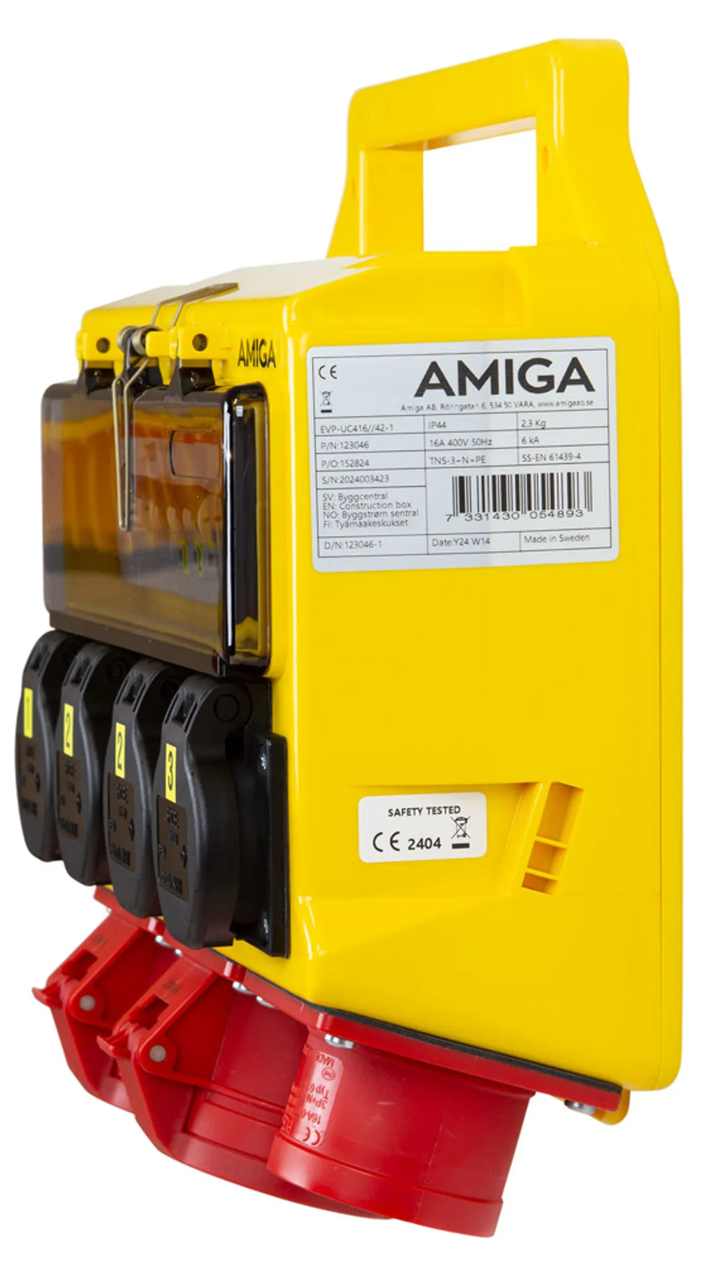 En kompakt robust elväska byggd i slagtålig ABS plast Utmärkt på byggarbetsplatser och industri. Centralen är byggd i slagtålig ABS plast som tål låga temperaturer utan att spricka. Centralen är resistent mot syror, alkaliska lösningar, alkohol, fett, olja, och saltlösning. Bärhandtag med integrerad upphängning. Säkringslock i slagtålig polykarbonat som är självstängande. PRO modellen är utrustad med en extra säkring som gör att man får en bättre fasfördelning på Schuko uttagen.