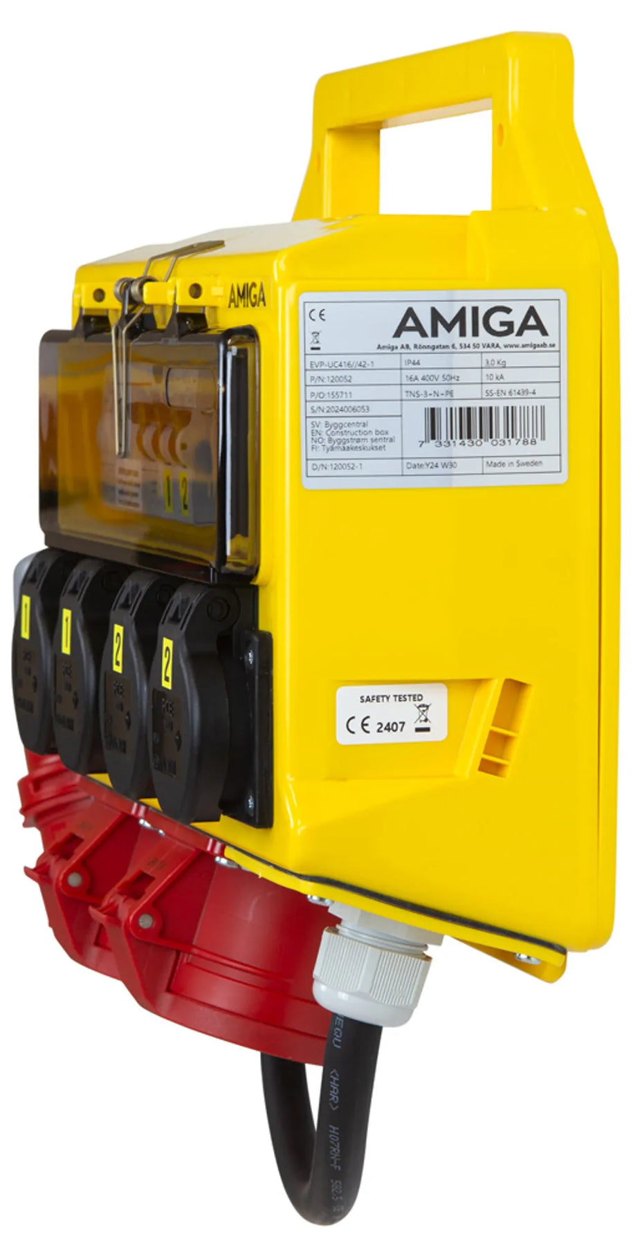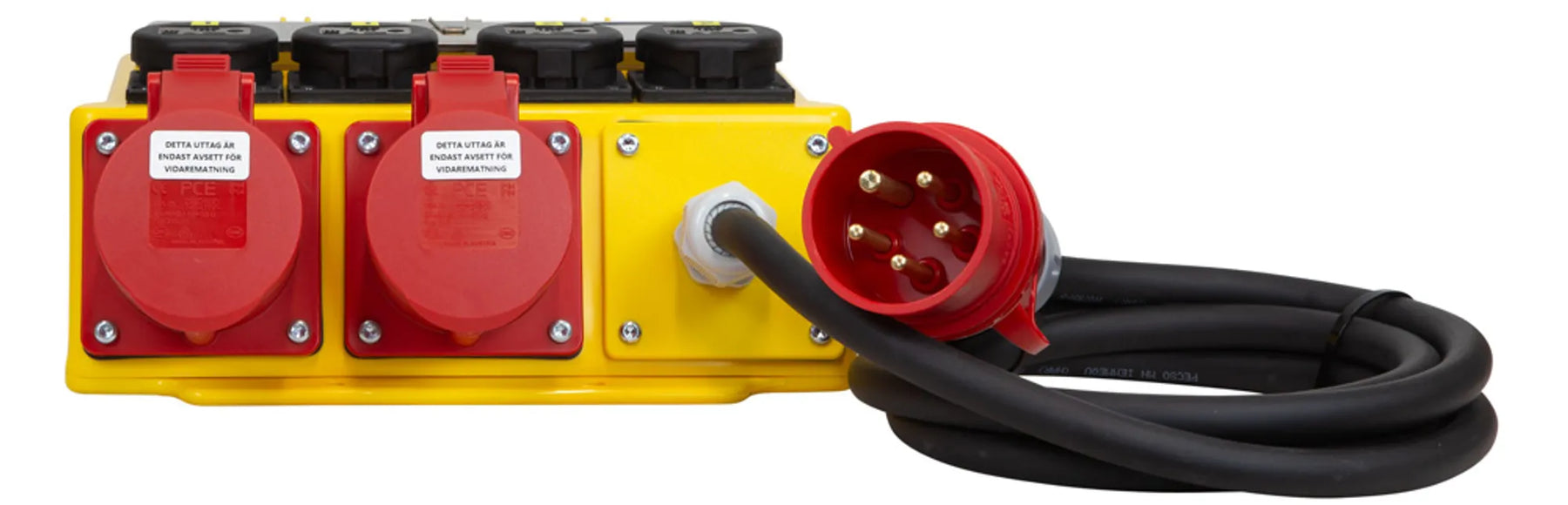 Byggcentral 16A med anslutningskabel 5Gx2,5mm² 2,5m. En kompakt robust elväska byggd i slagtålig ABS plast Utmärkt på byggarbetsplatser och industri. Centralen är byggd i slagtålig ABS plast som tål låga temperaturer utan att spricka. Centralen är resistent mot syror, alkaliska lösningar, alkohol, fett, olja, och saltlösning. Bärhandtag med intrigerad upphängning. Säkringslock i slagtålig polykarbonat som är självstängande.