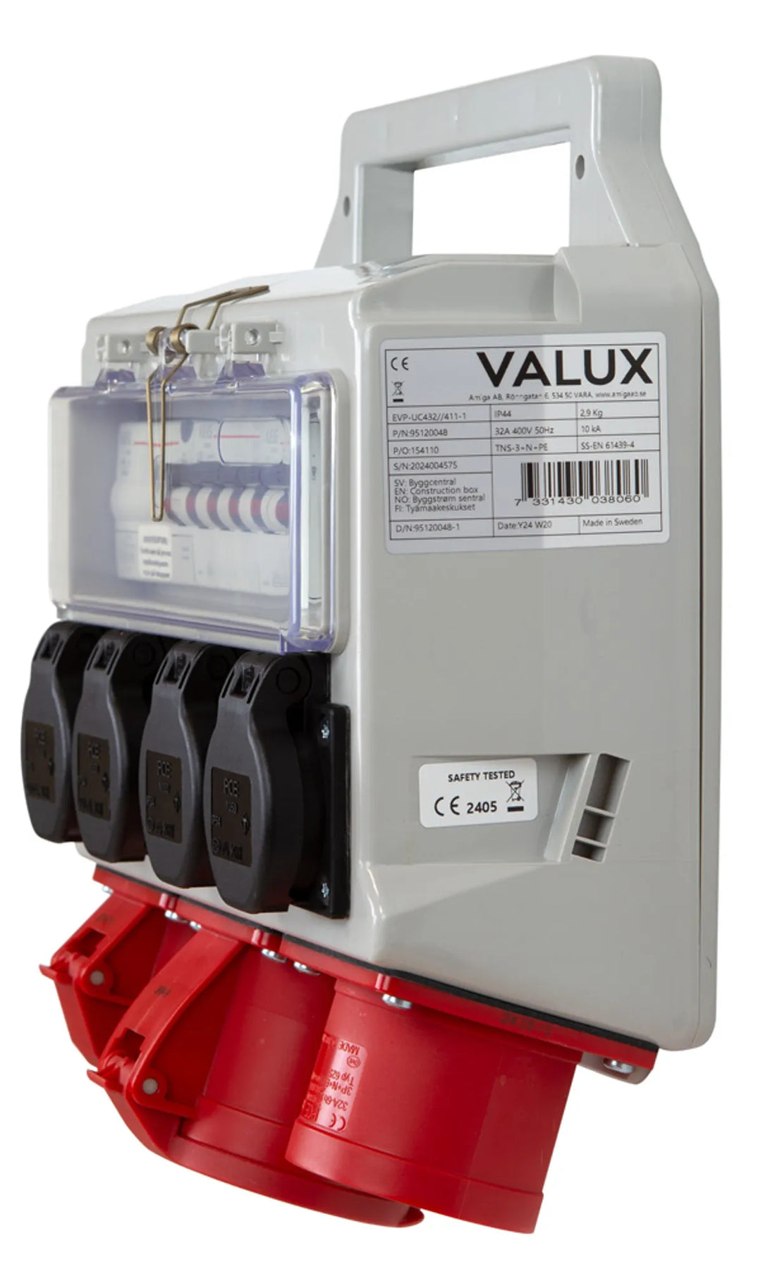 Byggcentral 32A Valux En kompakt robust elväska byggd i slagtålig ABS plast Utmärkt på byggarbetsplatser och industri.Centralen är byggd i slagtålig ABS plast som tål låga temperaturer utan att spricka. Centralen är resistent mot syror, alkaliska lösningar, alkohol, fett, olja, och saltlösning. Bärhandtag med intrigerad upphängning. Säkringslock i slagtålig polykarbonat som är självstängande.