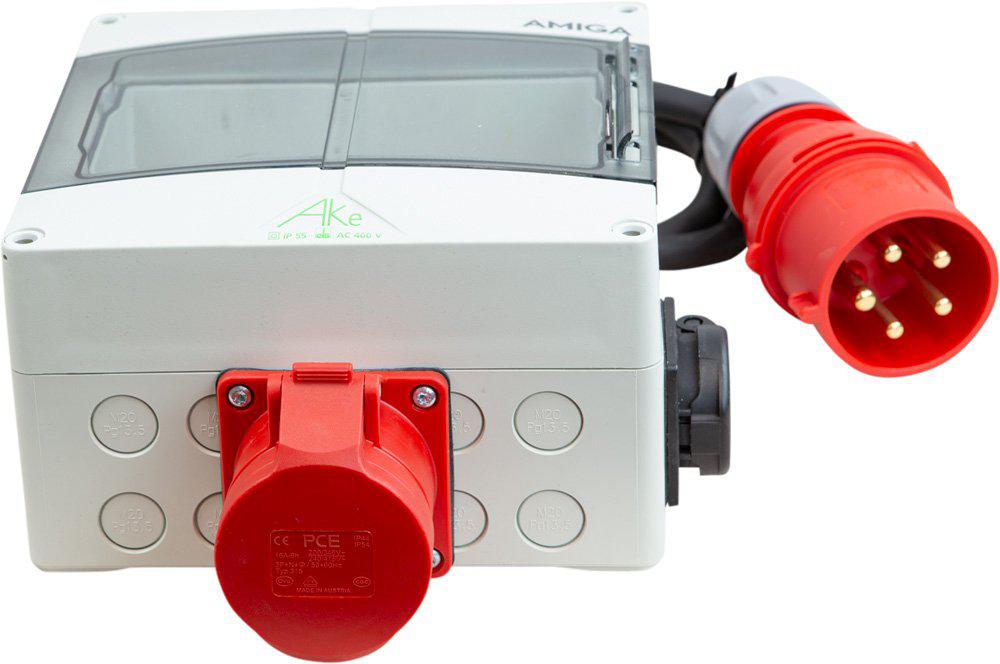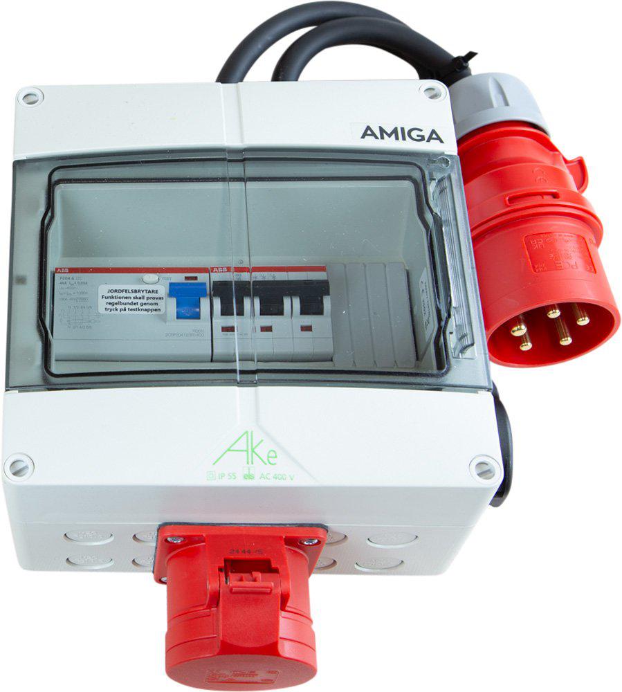 Övergångscentral 32A/400V till 16A/400V-16A/230V. Monterad i kapsling tillverkad av polystyren, inmatning med CEE 432-6 monterad på med extraförstärkt oljebeständig gummikabel 5G2,5 1m. Ett uttag CEE 416-6 400V. Ett uttag 16A 230V schucko. Avsäkrad med 3pol 16A Automatsäkring. För ökat personskydd är enheten utrustad med Jordfelsbrytare 4pol 40A 30mA. Godkänd för utomhusbruk. Lämplig för Industri, verkstad och byggarbetsplatser.