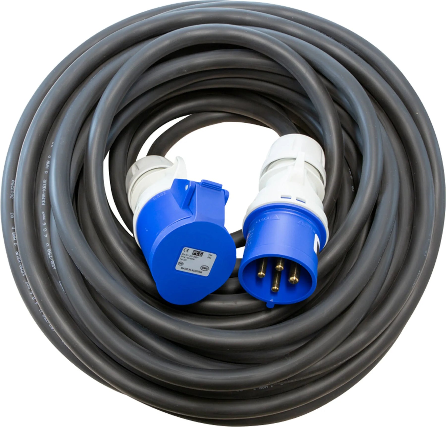 Motorkabel med extra förstärkt gummikabel (H07RN-F). Olje- och väderbeständig som är framtagen med hänsyn till flexibilitet och böjlighet i kyla. Monterad med greppvänliga, slagtåliga och oljebeständiga don. Godkänd för utomhusbruk. Lämplig för verkstad, industri och byggarbetsplatser. Produkten är klassas enligt IP44.CEE DON