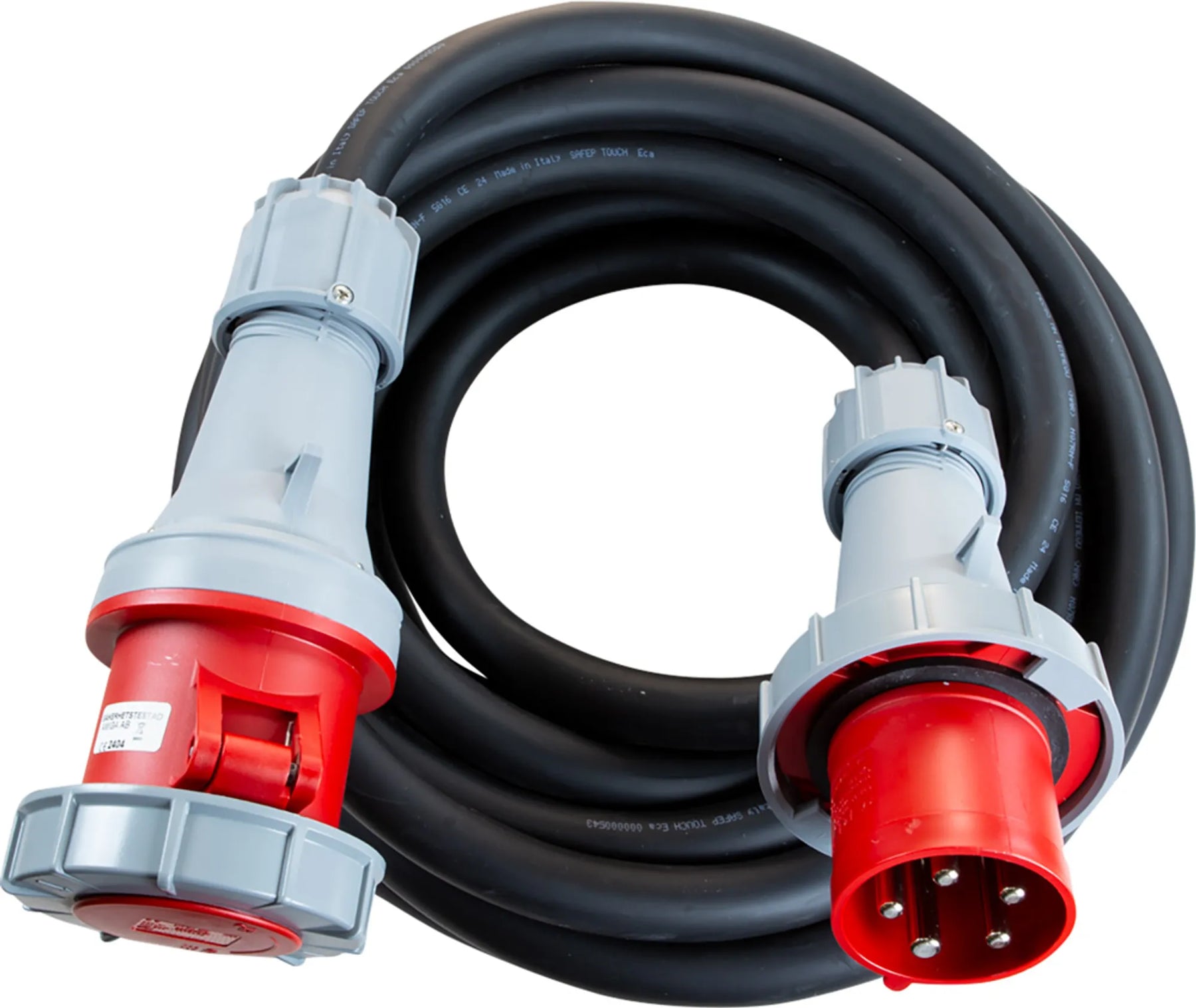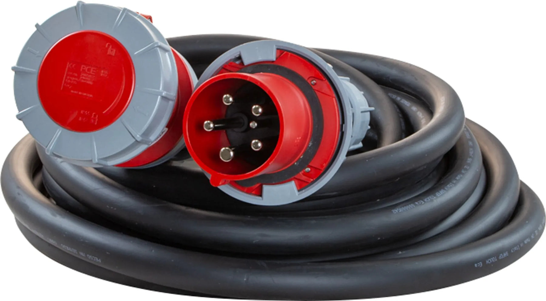 Motorkabel med extra förstärkt gummikabel (H07RN-F). Olje- och väderbeständig som är framtagen med hänsyn till flexibilitet och böjlighet i kyla. Monterad med greppvänliga, slagtåliga och oljebeständiga don utrustade med fjäderbelastad snabbkoppling.