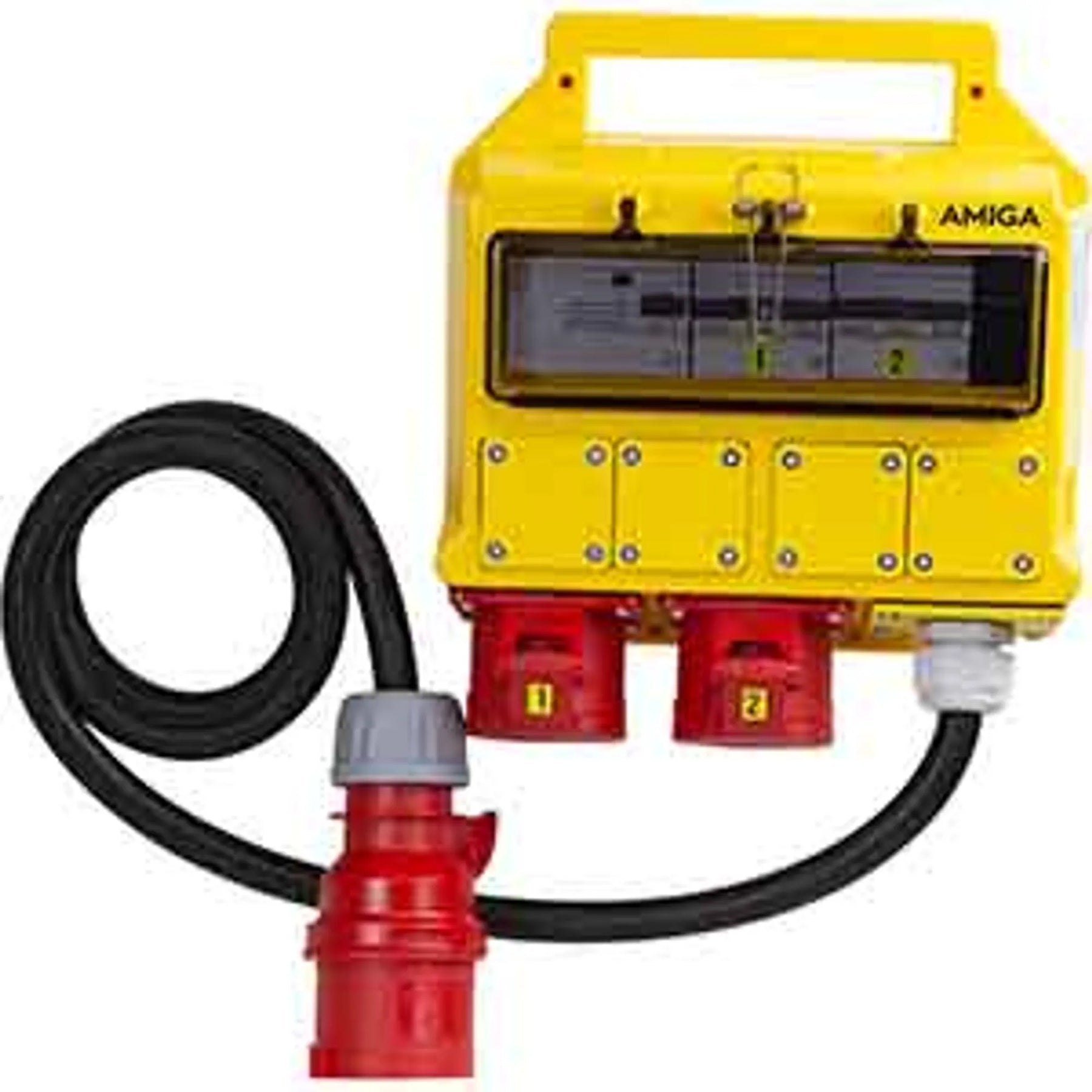 Enheten är utrustad med två uttag, CEE 416–6 400V säkrade med två 3-poliga 16A automatsäkringar och för ökat personskydd en 4-polig 40A 30mA jordfelsbrytare.