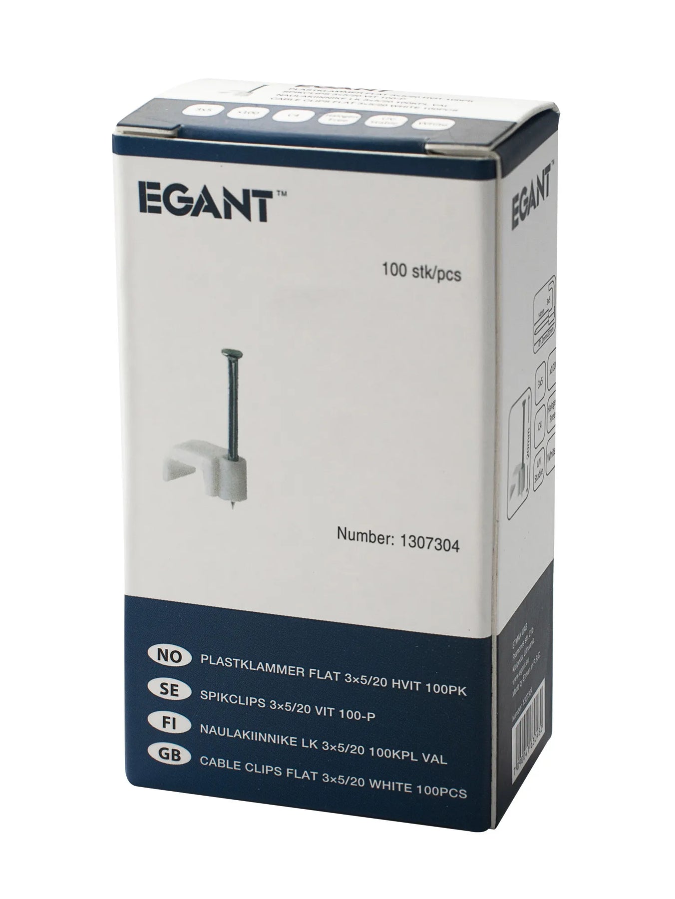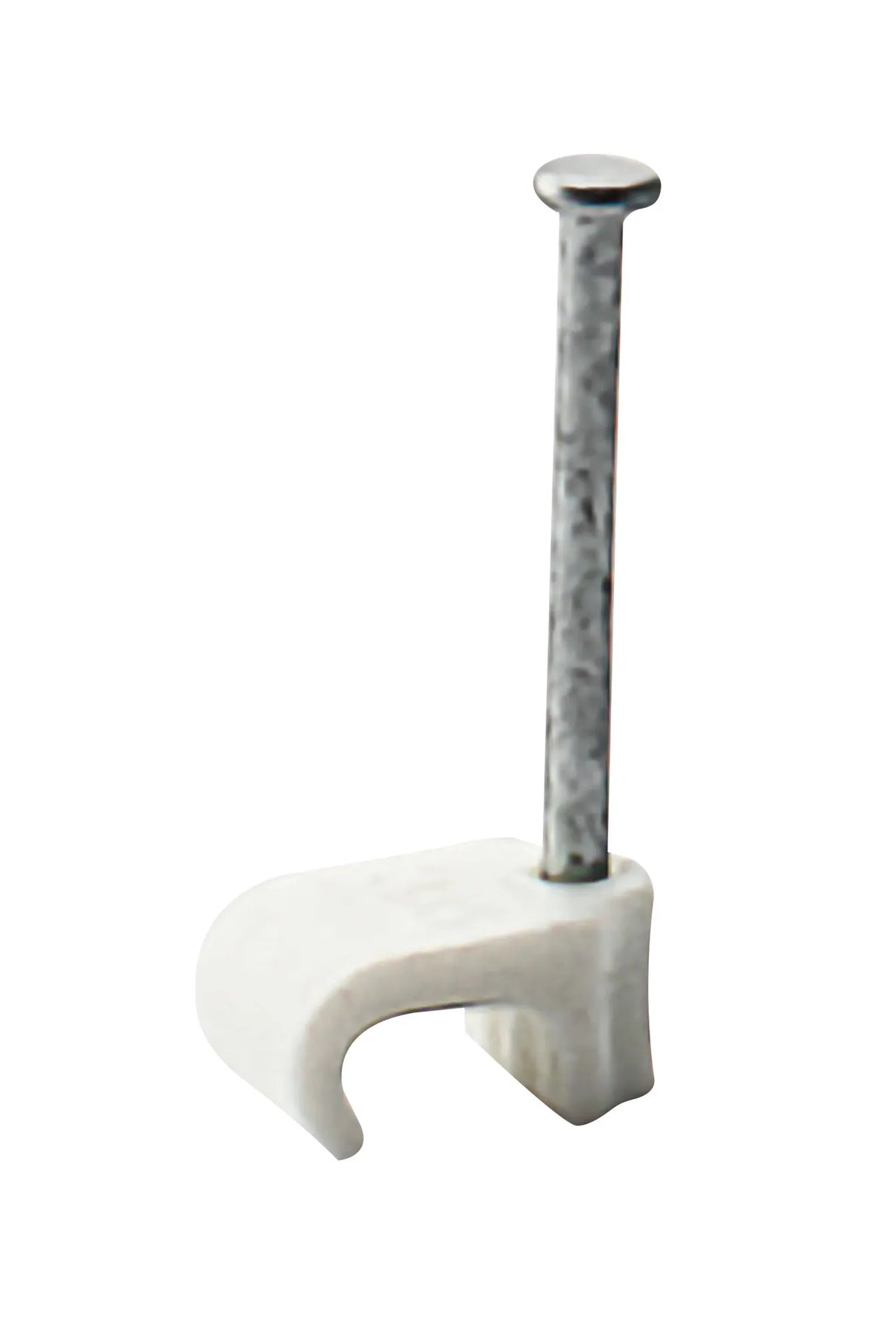Spikklammer för 3X5mm platt kabel. Klammer av vit UV-beständig plast med förstärkt 20mm stålstift. Halogenfri med korrosivitetsklass C4.